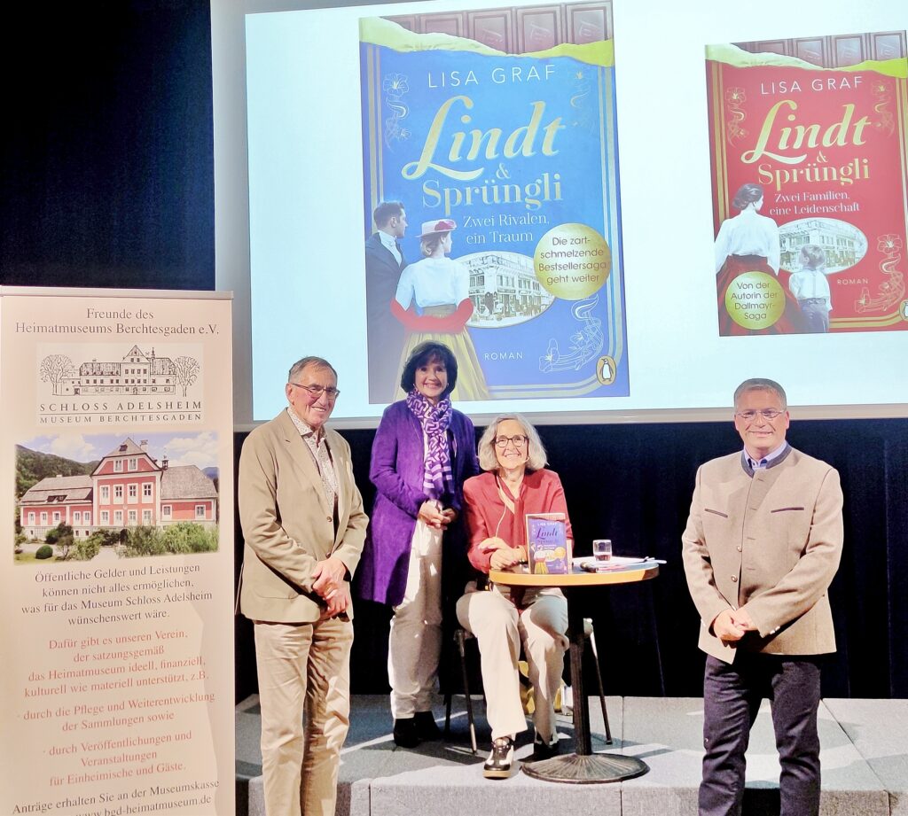 Berchtesgaden. Die Berchtesgadener Autorin Lisa Graf hat sich mit der Trilogie über das Münchner Delikatessenhaus Dallmayr in die Spiegel-Bestsellerlisten geschrieben – über 440 000 verkaufte Bände belegen das eindrucksvoll. Ende vergangenen Jahres erschien nun ihr neuer Roman „Lindt & Sprüngli – Zwei Familien, eine Leidenschaft“, der erste Band einer Trilogie um den bekannten Schweizer Chocolatier-Betrieb. Auf Einladung des Vereins der Freunde des Heimatmuseums Berchtesgaden las die Erfolgsautorin am vergangenen Freitag im AlpenCongress aus dem druckfrischen zweiten Band „Lindt & Sprüngli – Zwei Rivalen, ein Traum“ und entführte ihre begeisterten Zuhörer in das verlockende Reich zartschmelzender Schokolade und die faszinierende Geschichte des Schweizer Schokoimperiums.